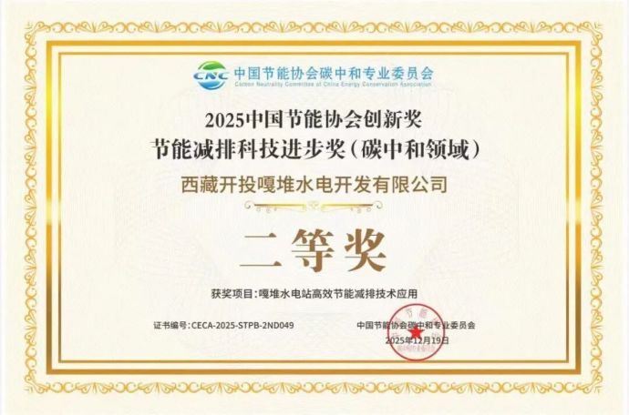 近日,中國節(jié)能協(xié)會(huì)2025年度創(chuàng)新獎(jiǎng)獲獎(jiǎng)名單正式公布,西藏開投嘎堆水電公司申報(bào)的“嘎堆水電站高效節(jié)能減排技術(shù)應(yīng)用”項(xiàng)目榮獲“節(jié)能減排科技進(jìn)步獎(jiǎng)(碳中和領(lǐng)域) 二等獎(jiǎng)”。