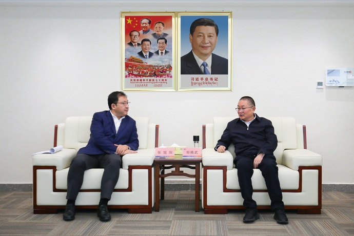 祁騰武對(duì)張旭陽(yáng)一行來(lái)訪表示歡迎,并介紹了西藏開(kāi)投集團(tuán)概況、生產(chǎn)經(jīng)營(yíng)和投資建設(shè)情況。他表示,光大銀行作為國(guó)內(nèi)領(lǐng)先的綜合性金融機(jī)構(gòu),在綠色金融、創(chuàng)新金融服務(wù)方面具有顯著優(yōu)勢(shì)。西藏開(kāi)投集團(tuán)與光大銀行已有良好的合作關(guān)系,期待與光大銀行在多層次、多領(lǐng)域開(kāi)展更加深入務(wù)實(shí)合作,歡迎光大銀行參與西藏開(kāi)投清潔能源開(kāi)發(fā)建設(shè),共同探索“科技賦能產(chǎn)業(yè)、金融助力發(fā)展”新路徑,助力地區(qū)經(jīng)濟(jì)社會(huì)發(fā)展和國(guó)家“雙碳”戰(zhàn)略目標(biāo)實(shí)現(xiàn)。